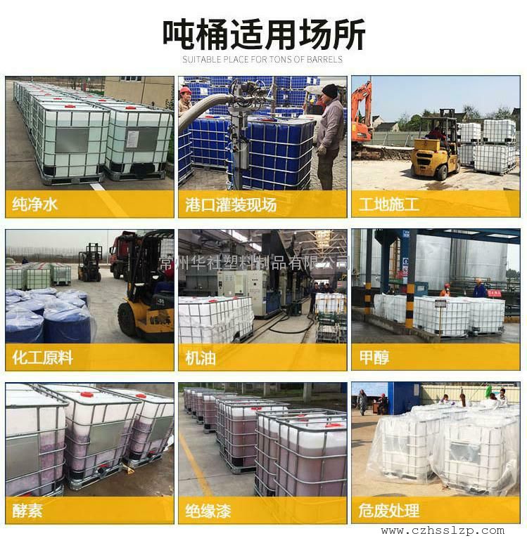 适用:IBC集装桶外形为方形长方体状,大约1.3立方,与200L桶相比能节省35%的堆放空间。从配置设计上看,其顶部配有放料口,装料方便省力,底部配有出料阀门及导流管,能直接将原料放出。同时,此桶还配有方便叉车装卸的底座,这就大大减少了人工搬运的麻烦,不仅更快捷高效,而且还更安全。