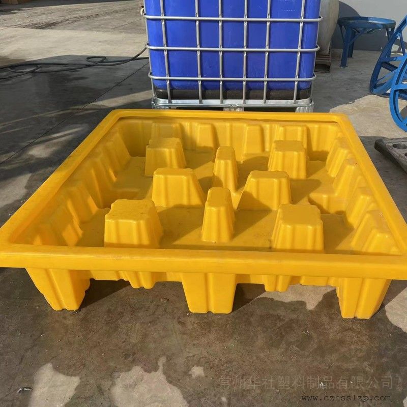 加工定制:否 材质:PE 尺寸:1300*1300*300 mm 品牌:华社 型号:1000L 耐腐蚀防渗漏拖盘四桶塑料卡板化学品防渗漏托盘 【产品性能】:本公司容器无毒无味,防潮防冻,稳定性极佳,高强度。电绝缘性优良,防静电。本容器内外光滑、抗强震、防紫外线照射使用寿命长、不长青苔易清洗、安装移动方便,具有安全便捷、无需维修。