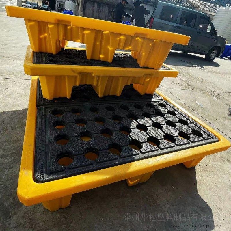 危废仓库平台沥水防泄漏托盘化工厂防污染卡板 本容器为滚塑一体成型之产品,具有无焊、无缝、无毒、无气味、易清洗、搬运灵活之优点。